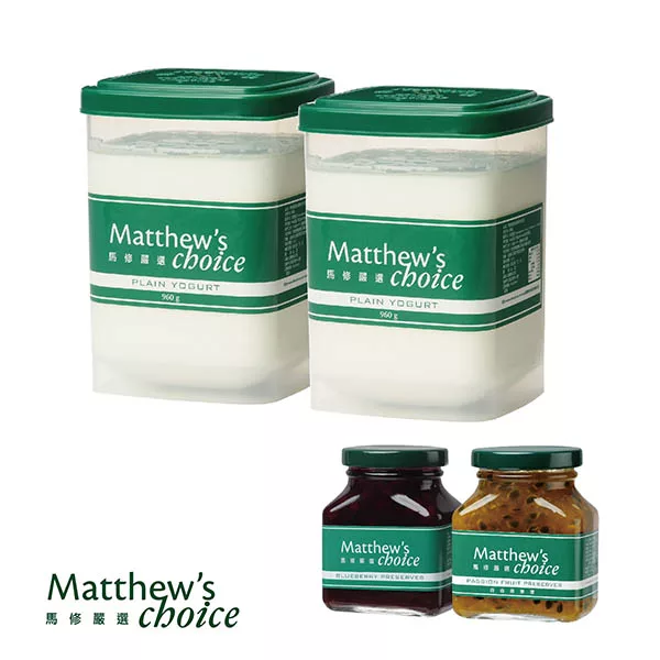 【馬修嚴選】原味優格分享號(2入)+季節限定百香果果漿(1入)+藍莓果漿(1入)